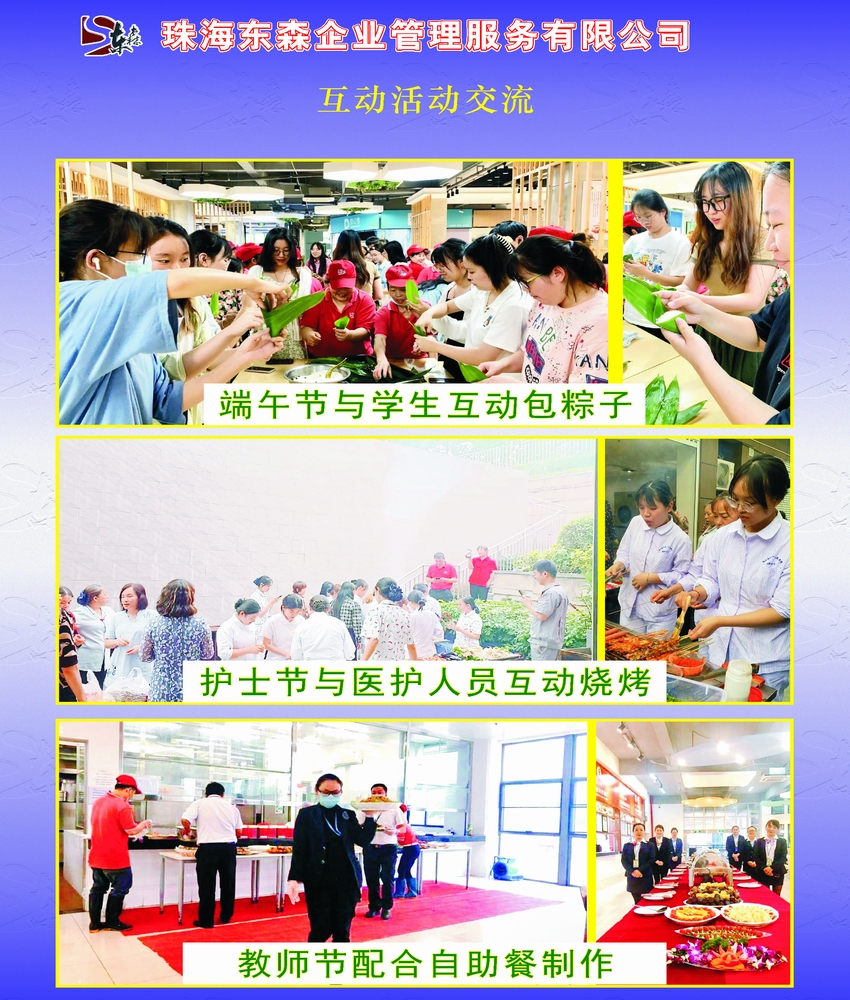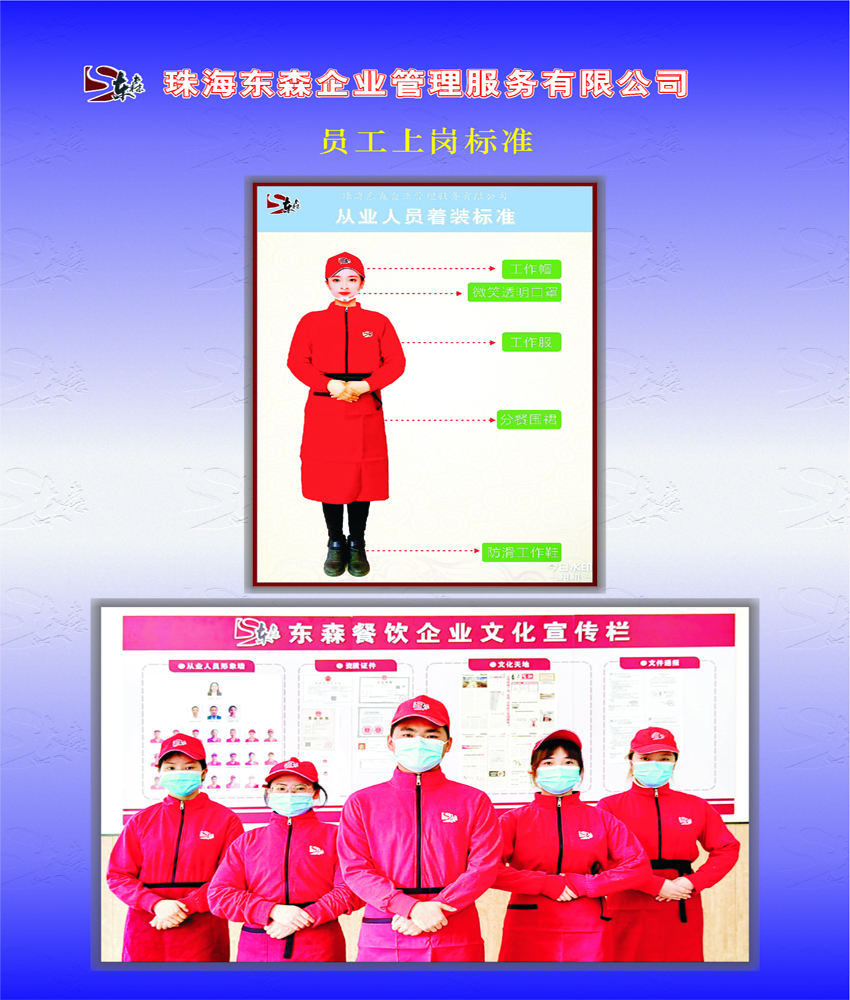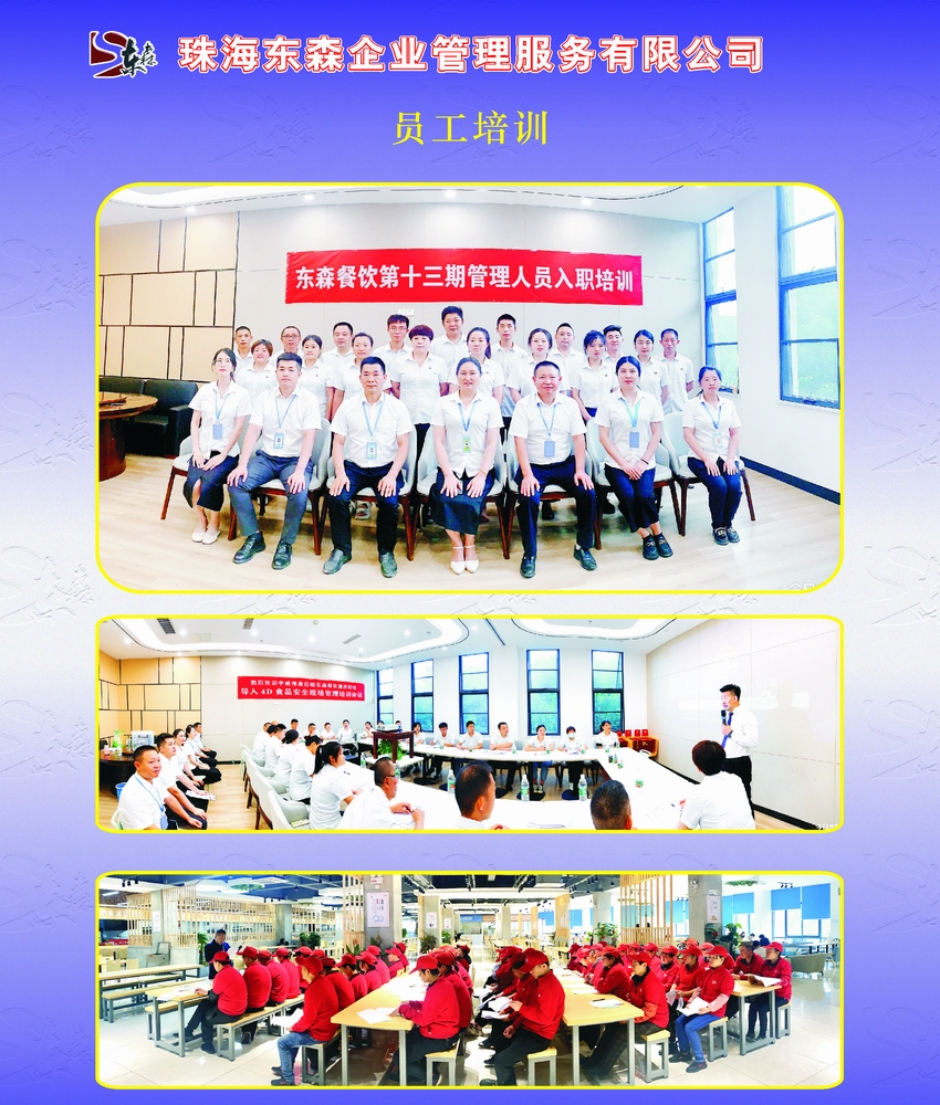 珠海東(dong) 森企業(ye) 管理服務有限公司於(yu) 1997年涉足配餐管理服務領域,集食堂管理,營養(yang) 配餐,特色餐飲,酒樓餐飲為(wei) 一體(ti) ,率先通過HACCP認證(國際食品安全管理體(ti) 係認證)的餐飲經營服務企業(ye) 。 公司業(ye) 務範圍涵蓋了廣東(dong) 、重慶、海南、貴州、新疆、甘肅、遼寧等地,迄2023年止,餐飲公司有員工3000餘(yu) 人。管理層150餘(yu) 人,中高層管理人員具有豐(feng) 富的外資企業(ye) 管理。東(dong) 森餐飲堅持注重文化內(nei) 涵和管理內(nei) 涵的基礎上作外延式擴張,以“誠信為(wei) 本,永續經營”的經營理念為(wei) 宗旨、“學而不厭,誨人不倦”的教育訓練觀為(wei) 基礎、“科學與(yu) 人文並重,規範與(yu) 個(ge) 性共存”的管理理念為(wei) 創新,一直恪盡職守地為(wei) 大家提供優(you) 質膳食服務。 公司堅持“準確合理,快速反應”的服務理念,將6S實務、餐飲五常法、餐飲業(ye) 6T、餐飲4D標準等模式融入運用於(yu) 餐飲管理中,為(wei) 公司的發展夯實基礎。公司以QSCV(品質、衛生、服務、價(jia) 值)和HACCP食品安全管理體(ti) 係為(wei) 要求,按照餐飲行業(ye) 的安全性、準確性、應變性的操作模式來運作,以最優(you) 質的服務和獨特的經營管理模式來獲得客戶的認同。 廣東(dong) 片區合作單位: 珠海電視台、深圳華南國際工業(ye) 原料城、英傑維特(珠海)有限公司、遵義(yi) 醫學院珠海校區、珠海市金灣區第一小學、珠海市技師學院、珠海藝術職業(ye) 學院、中山市神灣中心小學等食堂。 新疆片區合作單位: 伊犁師範大學、博州人民醫院、博樂(le) 市機關(guan) 事務服務管理局、博樂(le) 市州政府機關(guan) 等食堂。 遼寧片區合作單位:中核二二遼寧徐大堡生活基地食堂。 海南片區合作單位:中核昌江項目部職工食堂。 甘肅片區合作單位:中核四〇四甘肅礦區職工食堂。 四川片區合作單位:阿壩紅原機場有限責任公司職工食堂。 重慶片區合作單位:重慶師範大學、重慶商務職業(ye) 學院、重慶城市管理職業(ye) 學院、重慶兩(liang) 江新區第一人民醫院、重慶萬(wan) 州區第一人民醫院、重慶市南川區人民醫院等食堂。 東(dong) 森公司經營管理規範嚴(yan) 格、客戶口碑甚好,滿意度普遍較高(詳情可登陸公司網查詢,網址:
