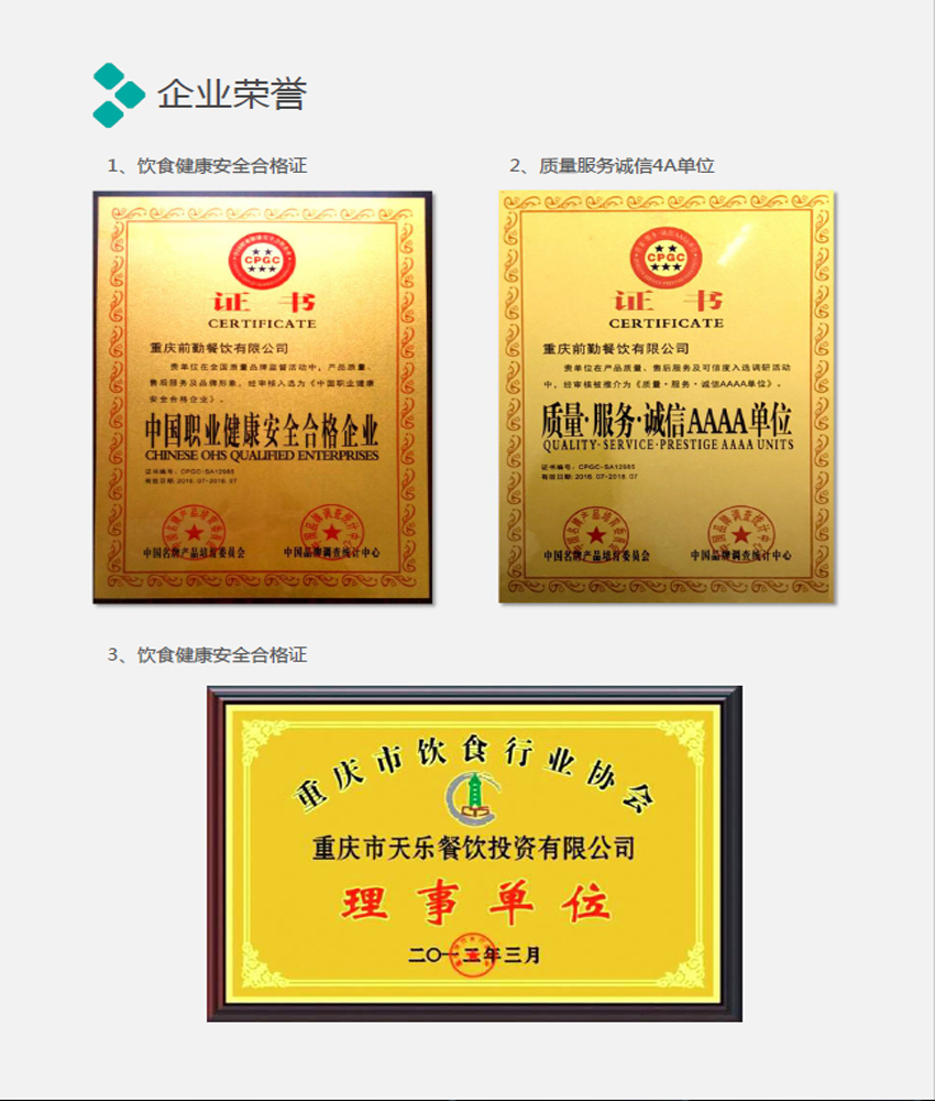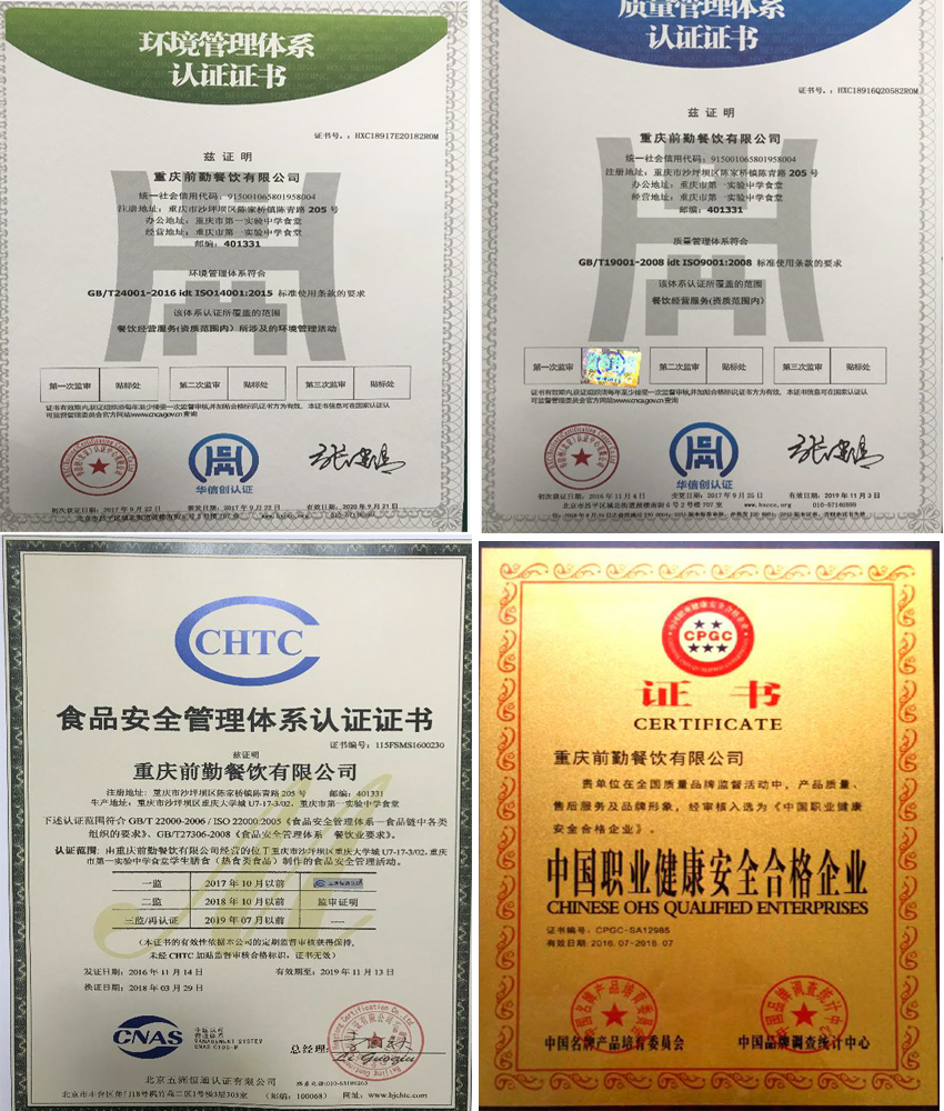 重慶前勤餐飲有限公司(原重慶天樂(le) 餐飲投資有限公司)成立於(yu) 2011年,注冊(ce) 資金1500萬(wan) 元,員工200餘(yu) 人。是一家集經營和管理於(yu) 一體(ti) 的餐飲公司。每天為(wei) 幾萬(wan) 人提供就餐。 公司一貫堅持“努力打造時尚的就餐環境,將五湖四海的菜品融於(yu) 一體(ti) ”的經營理念。我們(men) 了解消費者的真正需求,我們(men) 遵循最重要的管理原則“顧客至上”,全心全意為(wei) 消費者提供最優(you) 質的服務,倡導“務實求新、發展雙贏”的管理原則。 公司在不斷創新探索,本著腳踏實地做事、誠懇做人以及精致卓越的服務態度,深得廣大客戶與(yu) 消費者的一致讚賞。引進先進的經營模式,吸引東(dong) 方美食之精髓,借鑒內(nei) 外先進的,創新推出高標準、高效益別具特色的餐飲理念,力爭(zheng) 做到更符合中國人膳食結構與(yu) 餐飲習(xi) 慣的連鎖體(ti) 係,遵循以科學化的管理,標準化的產(chan) 品運作體(ti) 係,用最短的時間發展成為(wei) 中國極具投資價(jia) 值的餐飲連鎖機構。 公司的服務的宗旨是:讓顧客們(men) 歡樂(le) 的用好每一餐。 服務理念: 以顧客為(wei) 友 以服務為(wei) 樂(le) 以安全為(wei) 主 以多元為(wei) 旨 以健康為(wei) 首 以營養(yang) 為(wei) 心 以特色為(wei) 精 以創新為(wei) 魂 戰略目標:“從(cong) 養(yang) 殖到餐桌一體(ti) 化經營、做食品放心工程” ——打造餐飲服務典範 企業(ye) 精神:責任、創新、敬業(ye) 、團結 經營思想: 美 食:匯各類美食,聚豐(feng) 富多彩食品,滿足不同口味需求; 環 境:時尚活潑、輕鬆優(you) 雅。快樂(le) 用餐、滿意用餐、享受校園美好生活; 平 台:客戶互動,搭建客戶溝通平台,提供實踐機會(hui) ,傳(chuan) 遞服務理念。 管理目標:標準與(yu) 個(ge) 性相統一,快捷與(yu) 安全相統一,熱情與(yu) 禮儀(yi) 相統一, 親(qin) 切與(yu) 高雅相統一,守責與(yu) 靈活相統一。 餐廳/食堂是學習(xi) 、工作、生活的重要組成部分,食品安全是健康身體(ti) 的最大保障。 l 控製原材料的產(chan) 地、采供等; l 建立獨立的食品檢測體(ti) 係;建立從(cong) 農(nong) 田到餐桌的全程食品安全監管體(ti) 係。 l 設有農(nong) 產(chan) 品檢驗間和留樣間,長年堅持原材料安全檢測和食品菜品留樣製度。 l 營造良好的經營環境,添置現代化淨化設備,確保各個(ge) 鋪麵的餐具安全衛生。 l 為(wei) 保障食品安全,建有專(zhuan) 門的大型凍庫。 l 嚴(yan) 格按照食品安全的相關(guan) 標準和要求,加強日常監管。 l 加工過程,嚴(yan) 格規範操作,采用現代化專(zhuan) 業(ye) 清洗設備; 食品營養(yang) u 擁有一批通過國家營養(yang) 認證的專(zhuan) 業(ye) 化的營養(yang) 師。 u 根據不同年齡,為(wei) 客人提供最科學的、最營養(yang) 的合理營養(yang) 膳食搭配餐飲, 保證客人的身體(ti) 健康、增強身體(ti) 素質。 經營宗旨 我司會(hui) 遵循用戶的餐飲配套要求,餐廳用全新時尚的設計風格、特色多樣 化的經營方式、安全健康的營養(yang) 飲食為(wei) 所有客人提供最美的用餐環境,最物美 價(jia) 廉的餐飲食品。從(cong) 而提升配套餐飲服務的品質,使之成為(wei) 餐飲服務的典範。 現代化、多元化、營養(yang) 化、安全化的食堂餐飲配套服務是提升優(you) 質服務的有力保障。