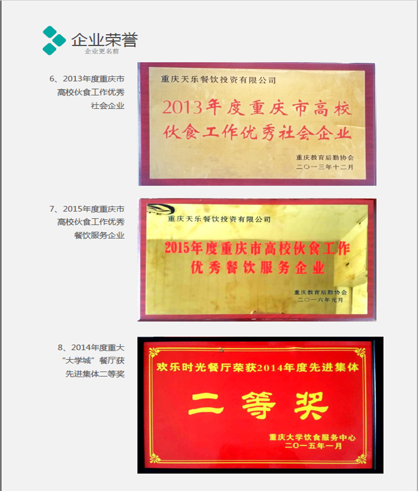 重慶前勤餐飲有限公司(原重慶天樂(le) 餐飲投資有限公司) 地址:重慶大學新校區一食堂歡樂(le) 時光美食廣場 聯係:徐先生(餐飲總經理) 手機:13883408858 郵箱:862340405@qq.com 電話:023-65678662(傳(chuan) 真) 企業圖片 |