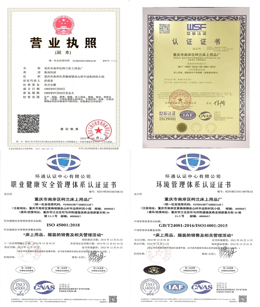 重慶市南岸區柯蘭(lan) 床上用品廠(原重慶市渝北區床上製品廠),創建於(yu) 1985年。因企業(ye) 發展需要,1993年由渝北區遷往南岸區,現位於(yu) 黃桷埡中小企業(ye) 園內(nei) ,廠區占地5.9畝(mu) ,擁有職工數十人,生產(chan) 技術力量雄厚。 我廠專(zhuan) 業(ye) 生產(chan) 棉絮、被套、枕芯、枕套、床單、服裝等產(chan) 品,擁有先進的棉胎生產(chan) 設備,年設計生產(chan) 能力100萬(wan) 床。擁有先進的縫紉機械等數十台,完全能滿足套件及服裝的產(chan) 量要求。建廠三十年來,我們(men) 積累了豐(feng) 富的生產(chan) 管理,生產(chan) 技術不斷發展完善,企業(ye) 效益年年攀升。現還聘請專(zhuan) 業(ye) 技術人員手工生產(chan) 質量品質更優(you) 的無網棉絮及嬰幼兒(er) 床上用品。我廠每年都通過了重慶市計量質量檢測研究院(原重慶市纖維檢驗局)的隨機質量檢測,獲得重慶市家用紡織品協會(hui) 頒發的“集團購買(mai) 纖維製品生產(chan) 加工企業(ye) 質量保證條件證明”資格。從(cong) 2014年起每年都通過了ioses9001:2008標準的質量體(ti) 係認證。2016年還通過了ISO14001:2004環境管理體(ti) 係認證和ISO18001:2007職業(ye) 健康安全管理體(ti) 係認證。 為(wei) 了企業(ye) 的發展壯大,我廠從(cong) 2004年起長期同新疆慰犁縣著名棉絮生產(chan) 企業(ye) 建立了全麵戰略合作關(guan) 係,獨家引進新疆名牌:“天山雪域”棉胎。並與(yu) 其開展技術交流,引進先進的現代化管理製度,不斷發展創新。我廠於(yu) 2015年投資引進了最新的棉胎自動化生產(chan) 線,擴大了生產(chan) 量。目前,我廠在全市擁有50多個(ge) 經銷點,並在解放碑、朝天門等商業(ye) 中心開辦了直營店,還成為(wei) 了原”北京華聯”“人人樂(le) ”、“麥德龍”等大型企業(ye) 的優(you) 秀供貨商。我廠的產(chan) 品還通過麥德龍銷往中西部10個(ge) 大城市。2015年,我廠已被重慶市渝北區石船鎮民政局和重慶市南川區民政局評選為(wei) 合格供應商。我廠擁有“重慶市新利体育官网首页入口物資供貨企業(ye) 準入證”,在曆年的重慶市教委舉(ju) 辦的高校後勤物資招投標競爭(zheng) 中,我廠憑借優(you) 秀的綜合實力,同重慶大學、重慶郵電大學、重慶師範大學、重慶航天職業(ye) 技術學院、重慶市南川隆化職業(ye) 中學校、重慶渝中職業(ye) 教育中心、重慶渝北職業(ye) 教育中心等單位建立了長期的良好合作關(guan) 係。 在企業(ye) 的發展中,我們(men) 秉承“品質為(wei) 先,客戶為(wei) 本”的服務理念,發揚“至真,至誠,至信”的企業(ye) 精神,堅持以人為(wei) 本,以市場為(wei) 中心,為(wei) 客戶創造價(jia) 值,為(wei) 把重慶市南岸區柯蘭(lan) 床上用品廠建設成為(wei) 全國知名的家紡企業(ye) 而努力。 工廠地址:重慶市南岸區黃桷埡鎮泉山村半邊街社中小企業(ye) 園 企業(ye) 網址:www.kelan520.com 聯係人:彭先生 李女士 聯係電話: 13708388936 15823575918 企業圖片 |