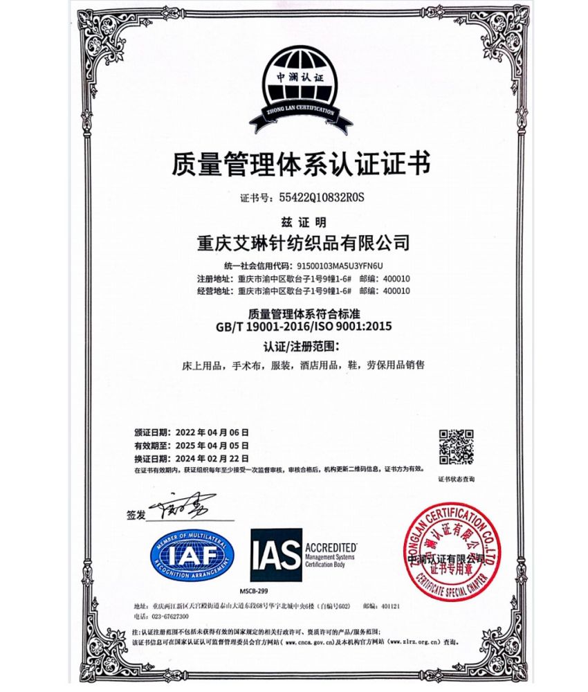 重慶艾琳針紡織品有限公司是重慶小林被服有限公司專(zhuan) 業(ye) 負責招投標的公司。我公司是一家專(zhuan) 業(ye) 經營紡織品的企業(ye) ,集研發、設計、生產(chan) 、銷售於(yu) 一體(ti) 。 公司主要生產(chan) 各類紡織品,有校園套件係列、酒店套件係列、員工宿舍套件係列、被類係列、床墊係列、枕芯係列、夏季用品係列等十二大係列200多種產(chan) 品,上千款花型。 我們(men) 視產(chan) 品質量為(wei) 企業(ye) 生命,把質量管理放在企業(ye) 管理的首要位置。2001年就通過了ISO9001:2000質量體(ti) 係審核認證,2011年通過了ISO14001環境管理體(ti) 係審核認證及ISO18001職業(ye) 健康管理體(ti) 係審核認證。 我們(men) 視客戶如上帝,將最優(you) 質的客服體(ti) 係運用於(yu) 廣大集團客戶市場,大大提高了企業(ye) 的采購效率及采購準確性。經過長期努力,我們(men) 已擁有了一大批忠實的企業(ye) 客戶,在各級客戶的支持下,我們(men) 不斷完善產(chan) 品,完善管理,同各合作企業(ye) 一同進步。 重慶艾琳針紡織品有限公司聯合小林寢飾還大力引進和培養(yang) 各類高級人才,借助人才、信息、科技優(you) 勢,使產(chan) 品品質始終保持同行領先地位。並在吸取先進技術的基礎上,每年不斷推出新產(chan) 品。引領床上用品界時尚新風尚。 於(yu) 2004年,我們(men) 在江蘇省南通市通州區川薑鎮川港工業(ye) 園區B區成立了全自動化的生產(chan) 基地,經過不斷地擴大創新,2016年8月,我們(men) 在江蘇省南通市經濟開發區對廠房進行了擴建升級。從(cong) 最開始的9000㎡擴建至20000㎡,采用全進口的機器設備進行生產(chan) 。其中噴氣織布機22台、裁剪機5台、絎縫機3台、梳棉機1台、平車有72台、等進口設備,保證了4000套的日產(chan) 量。 21世紀是品牌競爭(zheng) 的時代,品牌的背後是文化。誰擁有了適合本企業(ye) 特點的文化並具還擁有巨大的執行力,誰就會(hui) 成功,就會(hui) 立於(yu) 不敗之地。重慶艾琳針紡織品有限公司攜手小林寢飾將在傳(chuan) 承自己獨特文化基調的同時,追求卓越,不斷創新,力爭(zheng) 永立時代潮頭,成為(wei) 一家基業(ye) 長青的不老鬆。 聯係人:王利帆15178885319 企業圖片 |