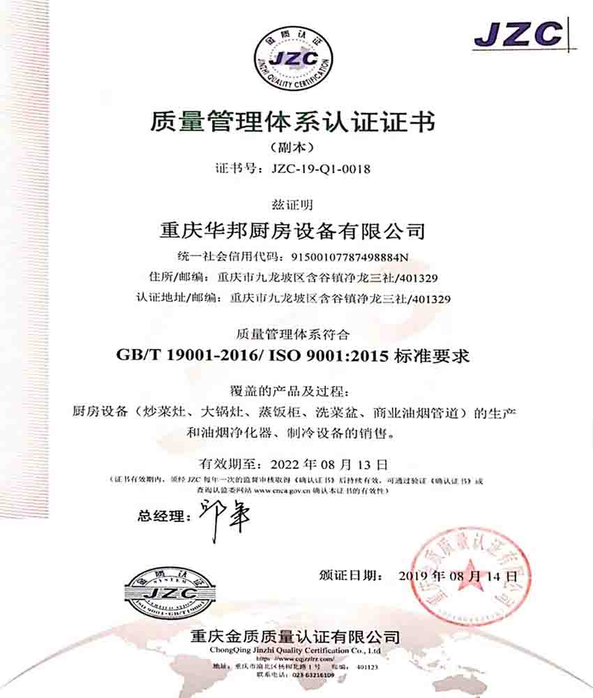 重慶華邦廚房設備有限公司 ( 簡稱 “ 華邦廚具 ”) 是在餐飲設備行業(ye) 領域中,集研究開發、生產(chan) 製造、市場推廣、客戶銷售於(yu) 一體(ti) ,覆蓋整個(ge) 餐飲設備用品係列,有多年專(zhuan) 業(ye) 思想和行業(ye) 的專(zhuan) 業(ye) 化公司,年產(chan) 值近4200萬(wan) 。 公司產(chan) 品主要有廚房設備、炊事機械、蔬菜加工機械係列,並獲得ISO9001:2015質量體(ti) 係認證、ISO14001:2015環保管理體(ti) 係認證、OHSAS18001:2007職業(ye) 健康安全管理體(ti) 係認證及全國工業(ye) 產(chan) 品生產(chan) 許可證。本著餐飲設備行業(ye) 的專(zhuan) 業(ye) 思想,結合本企業(ye) 強大的係統資源,圍繞 “銷售”與(yu) “服務”這兩(liang) 大主題,確定了“具體(ti) 分析客戶需求,充分提供客戶滿意”的市場經管原則。有專(zhuan) 業(ye) 化廠房,完善的配件庫,產(chan) 品齊全的成品庫,以及材料庫,同時有自產(chan) 產(chan) 品展示中心,廠區占地麵積4000餘(yu) 平方米,大中型設備20餘(yu) 台,包括大型數控剪板機、數控折彎機、磨砂機、衝(chong) 床、車床、鉚邊機等現代化廚房專(zhuan) 業(ye) 製作設備。 經營原則:我公司本著餐飲設備行業(ye) 的專(zhuan) 業(ye) 思想,結合本企業(ye) 強大的係統資源,圍繞“生產(chan) ”與(yu) “服務”這兩(liang) 大主題,確定了“具體(ti) 分析客戶需求,充分提供客戶滿意”的市場經管原則。 銷售渠道:自有及代理品牌推廣、各個(ge) 專(zhuan) 業(ye) 領域的直接銷售及同行業(ye) 內(nei) 的產(chan) 品銷售等。 服務內(nei) 容:廚房整體(ti) 設計、設備安裝、調試、培訓、售後服務及零配件供應、專(zhuan) 業(ye) 技術資訊支持等。 係統資源:專(zhuan) 業(ye) 超市商場和大型項目展示廳、設計研發及信息中心、集團采購中心、物流配貨中心、大型現代化的專(zhuan) 業(ye) 工廠等。 客戶群體(ti) :星級酒店賓館、社會(hui) 餐飲娛樂(le) 、市政工程項目、國際國內(nei) 連鎖快餐業(ye) 、連鎖超市和便利商店、工礦企事業(ye) 、各類院校企事業(ye) 單位、交通船舶鐵路業(ye) 、其他國際國內(nei) 專(zhuan) 業(ye) 同行等等。 品牌商品:自有品牌係列專(zhuan) 業(ye) 餐飲設備和用品用具、總代理總經銷全世界數十家知名品牌的進口設備和用品。 服務宗旨:公司堅持“以質量求生存,以信譽求發展”的宗旨,嚴(yan) 格、科學管理並以其優(you) 良的售後服務回報用戶。 聯係方式: 聯係人:王高輝 (總經理) 聯係電話:13983979100 023-68162170 企業(ye) 網址: 辦公地址:重慶市九龍坡區火炬大道99號千葉中央街區4-5-3 生產(chan) 地址:重慶市九龍坡區含穀鎮淨龍三社 辦公地址乘車路線: 公交車:426路,428路,109路,456路,268路,891路到“渝高香洲”公交車站下車即到。 自駕路線:地圖搜索“千葉中央街區”即到。 生產(chan) 地址乘車路線: 公交車:246路;263路;281路;287路到“淨龍”車站下車步行10分鍾。 自駕路線:地圖搜索“重慶華邦廚房設備有限公司”即到。 企業圖片 |