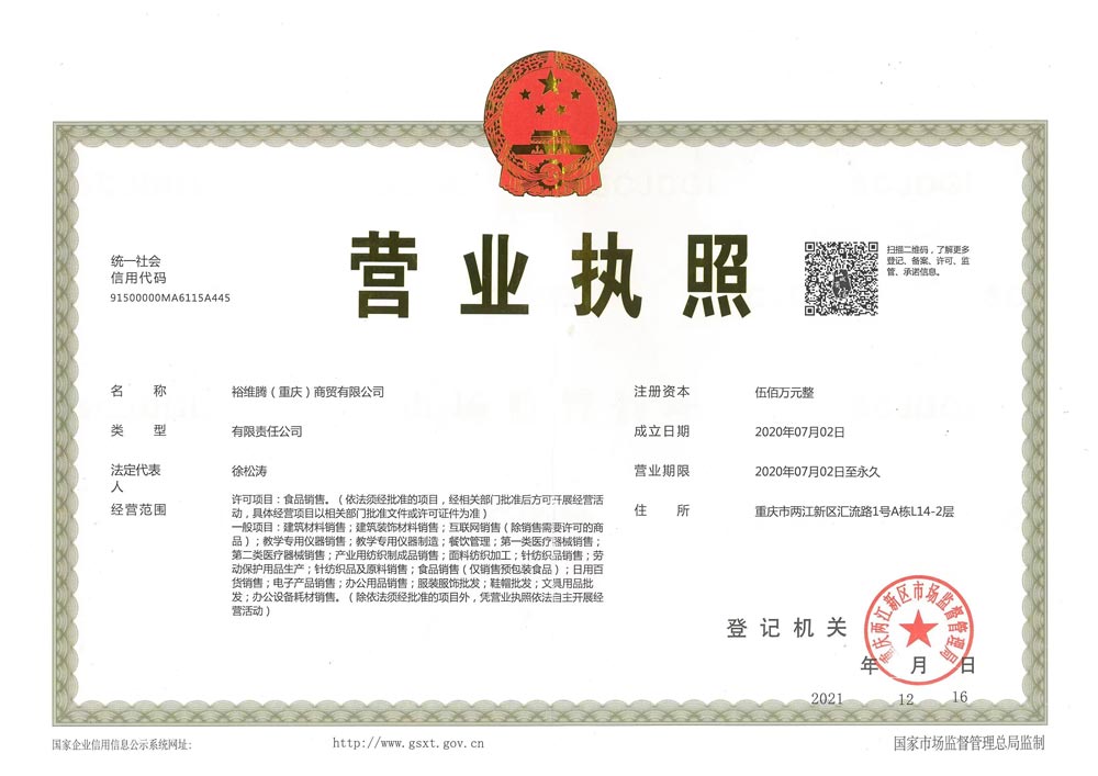 公司信息:裕維騰(重慶)商貿有限公司