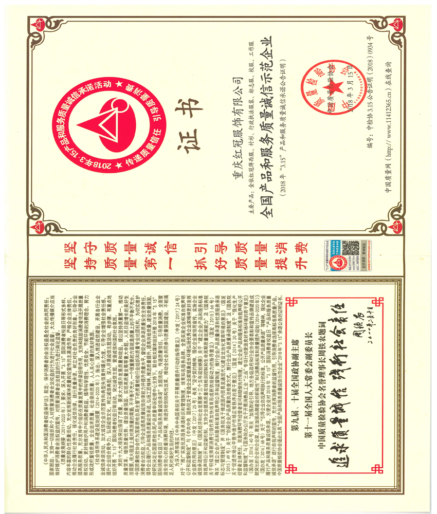 重慶紅冠服飾有限公司,創建於(yu) 2002年,注冊(ce) 資金5000萬(wan) 元。是集服飾研究、設計、開發、加工和銷售為(wei) 一體(ti) 的大型綜合性民營企業(ye) ,主要從(cong) 事中小學生校服、運動服、軍(jun) 訓服、學士服、學位服、教師職業(ye) 裝,公司旗下校服品牌“校服書(shu) 郎”,以日韓、英倫(lun) 、運動等風格為(wei) 主,將校園文化、潮流時尚與(yu) 經典完美結合。 公司廠房位於(yu) 重慶市巴南區沿江開發區輕紡服裝城E4棟,廠房麵積2500餘(yu) 平米.現有員工130餘(yu) 人,專(zhuan) 業(ye) 技術及管理人員20餘(yu) 人,擁有200餘(yu) 台目前世界先進的服裝生產(chan) 設備。一體(ti) 化的電腦設計、打版、自動裁割係統和數控縫紉機床加工生產(chan) 線,先進設備的投入使公司的加工水平日趨完美,這保證產(chan) 品的高質量水平的批量生產(chan) 奠定了堅實的硬件基礎。此外公司不斷引進大量的企業(ye) 管理人才和服裝專(zhuan) 業(ye) 人才,包括工商管理高級人才、資深服裝設計師、企業(ye) 形象策劃師、服裝製板師等,同時還建立了輻射西南地區的營銷服務網絡。經過十餘(yu) 載的沉澱以及公司全體(ti) 員工的奮力拚搏,現如今紅冠服飾已是一家具有獨特品牌文化理念、先進研發設計中心、現代化生產(chan) 基地、健全營銷服務係統、高效物流配送和網絡管理體(ti) 係的校服書(shu) 郎優(you) 良生產(chan) 企業(ye) 。 公司高效完美的產(chan) 品和服務,一致受到有關(guan) 部門和企業(ye) 的良好讚譽,還獲得了眾(zhong) 多殊榮,先後通過了ISO9001:2008質量管理體(ti) 係認證;IS014001:2004環境管理體(ti) 係認證、OHSAS18001:2007職業(ye) 健康安全管理體(ti) 係認證,被重慶市政府推薦為(wei) 《重慶市政府鼓勵采購部分產(chan) 品目錄》;還獲得“重慶市知名產(chan) 品” “中國著名品牌”、“質量.服務.誠信AAA企業(ye) ”、“全國消費者滿意產(chan) 品”、“服裝質量先進單位”等榮譽。 紅冠服飾的企業(ye) 願景是:成為(wei) 西南地區領先的校園服飾品牌。 企業圖片 |