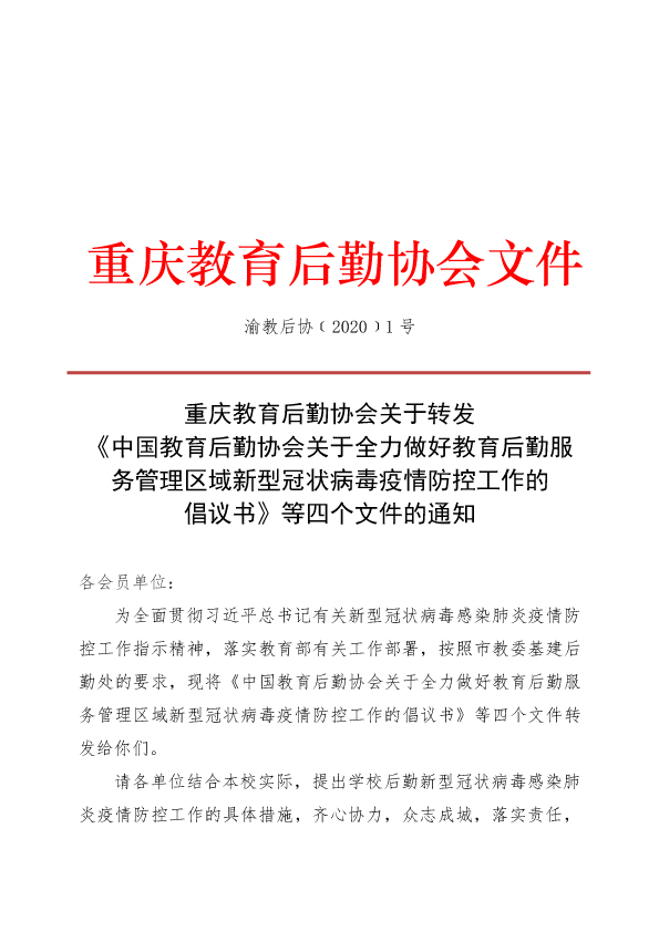 18luck平台關於轉發 《中國教育後勤協會關於全力做好教育後勤服務管理區域新型