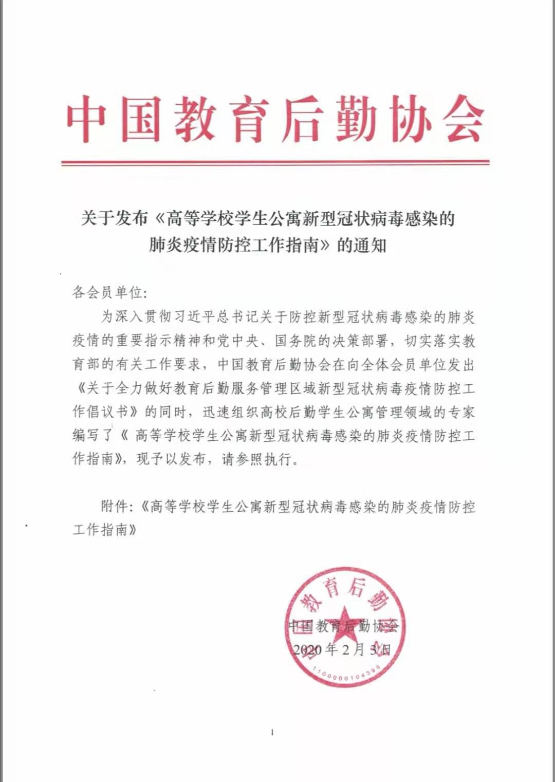 關於發布《高等學校學生公寓新型冠狀病毒感染的肺炎疫情防控工作指南》的通知