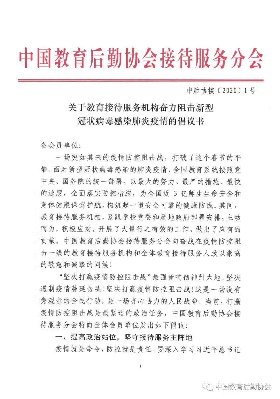 關於教育接待服務機構分離阻擊新型冠狀病毒感染肺炎疫情的倡議書