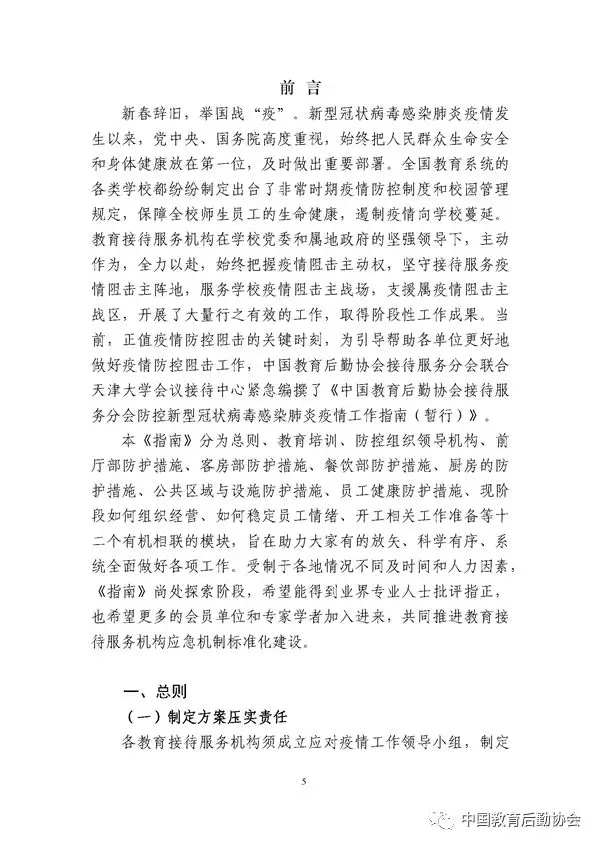關於發布《中國教育後勤協會接待服務分會防控新型冠狀病毒感染肺炎疫情工作指南(暫行
