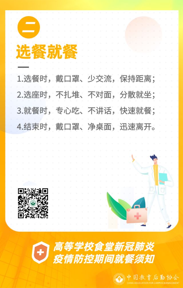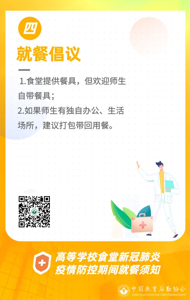 各會(hui) 員單位: 為(wei) 進一步加強新冠肺炎疫情防控工作,防範集中用餐帶來的交叉感染風險,我會(hui) 組織編寫(xie) 了《高等學校食堂新冠肺炎疫情防控期間就餐須知》,現印發給你們(men) ,請結合自身情況參照執行。
