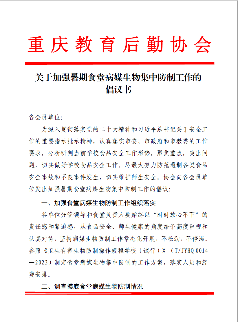 關於加強暑期食堂病媒生物集中防製工作的倡議書