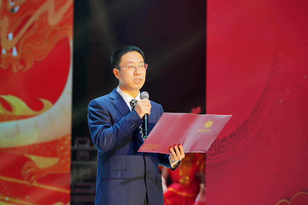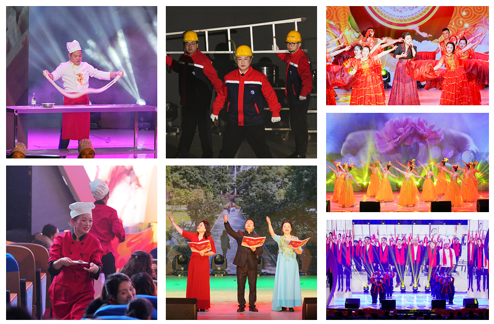 觀眾(zhong) 們(men) 一邊吃著熱氣騰騰的包子、餃子,一邊觀看台上展示做拉麵,嘴裏咬著包子沒法叫好隻能使勁鼓掌……這樣歡樂(le) 生動的場麵,發生在西南大學“我們(men) 是光榮的後勤人”2024年迎新春文藝晚會(hui) 現場。晚會(hui) 1月4日晚在大禮堂精彩上演,黨(dang) 委常委、副校長韓旭東(dong) ,受邀嘉賓及後勤保障部黨(dang) 委、後勤保障部、後勤集團幹部職工等近千人歡聚一堂,共敘情誼,共迎新春。