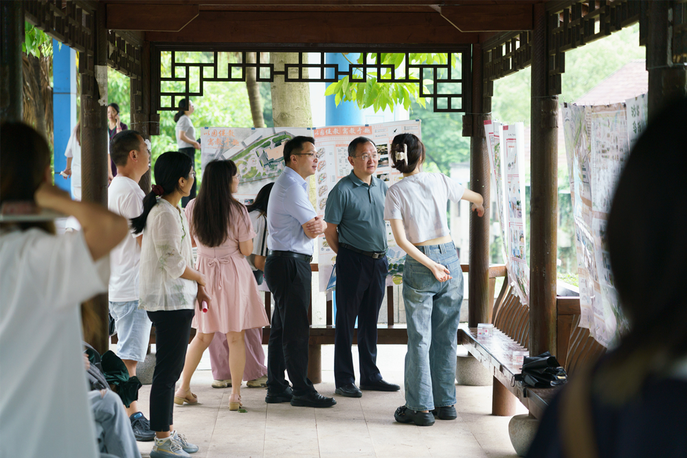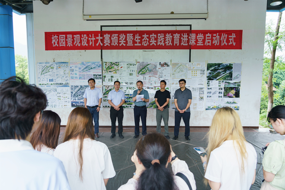 7月1日上午,西南大學園藝園林學院、後勤保障部黨(dang) 委在逸心廣場聯合舉(ju) 行校園景觀設計大賽頒獎暨生態實踐教育進課堂啟動儀(yi) 式,學校、後勤保障部黨(dang) 委、後勤集團負責人及學院黨(dang) 政領導、指導教師、學生代表、綠化環衛服務中心工作人員等50餘(yu) 人參加。