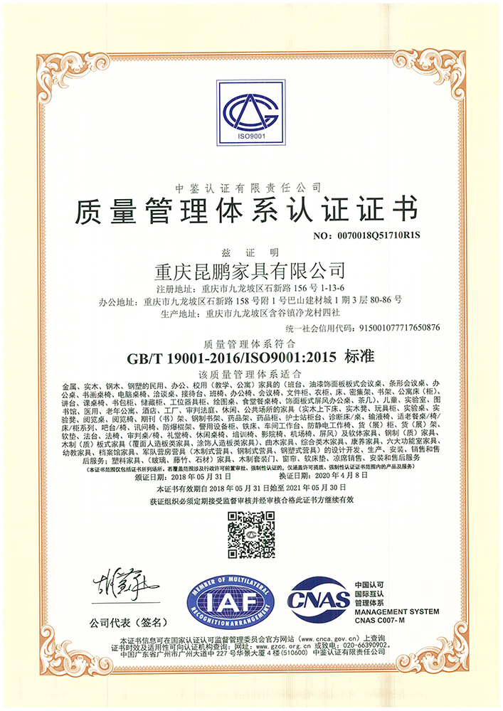 重慶昆鵬家具有限公司前身為(wei) 重慶家具研究所,1995年改建為(wei) 重慶家具總公司昆鵬家具廠,昆鵬公司誕生於(yu) 山美水美兩(liang) 江交匯之際,承十載重慶家具研究所之沉澱、乘曆年家具深化改革之春風,2005年改製為(wei) 重慶昆鵬家具有限公司,品牌為(wei) “昆鵬匯”;是一家專(zhuan) 業(ye) 設計、生產(chan) 、銷售辦公家具的專(zhuan) 業(ye) 廠家。 工廠位於(yu) 重慶市九龍坡區西彭鎮森迪大道1號重慶森迪時代產(chan) 業(ye) 基地第42號樓,目前已建成占地 8000 平方米,擁有標準廠房的現代化工廠,廠區設有木家具,鋼家具、軟體(ti) 家具生產(chan) 線,引進國內(nei) 外先進生產(chan) 技術及工藝,擅長於(yu) 設計生產(chan) 各類教學校用家具、辦公家具及酒店家具。我公司為(wei) 西南大學、重慶郵電大學、重慶大學、重慶市渝北人民法院,九龍坡區人民法院,重慶市公安局沙坪壩分局等單位長期供貨商,是重慶市沙坪壩區政府定點采購單位。公司有一批素質高、管理正規、認知家具市場的管理人員和具有多年製造辦公家私的技術工人師傅。廠裏每一件產(chan) 品的生產(chan) ,都是以設計的整體(ti) 創意與(yu) 美感為(wei) 先。以貨真價(jia) 實的原材料為(wei) 基礎,精工製造,層層質檢,旨在給客戶創造一個(ge) 最舒適典雅的辦公環境。 企業(ye) 自產(chan) 品投放市場以來。高質量的產(chan) 品、合理的價(jia) 格,優(you) 質快捷的售後服務,贏得了廣大新老客戶的一致信賴和支持。立足現在,展望未來,我們(men) 將繼續為(wei) 客戶提供細致、周到之服務, 超卓、優(you) 質之產(chan) 品,並引領昆鵬家具走向全國,邁向國際。 公司注冊(ce) 資金 8000 萬(wan) ,擁有雄厚的企業(ye) 基礎實力,具有完備資質、成熟經營理念,本著誠實守信、篤行包容的信條與(yu) 眾(zhong) 共贏市場,創新致遠。 理念:規則製度高於(yu) 一切,堅韌自律貫穿成長! 使命:環保生態、開拓創新。 辦公室地址:重慶市九龍坡區石新路158號巴山建材城3樓80號 聯係人:劉芳 聯係電話:023-68087118 /18702326173 企業圖片 |