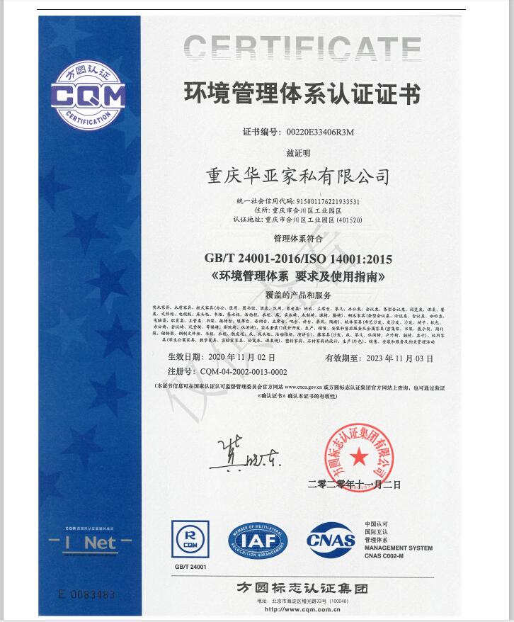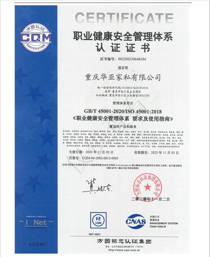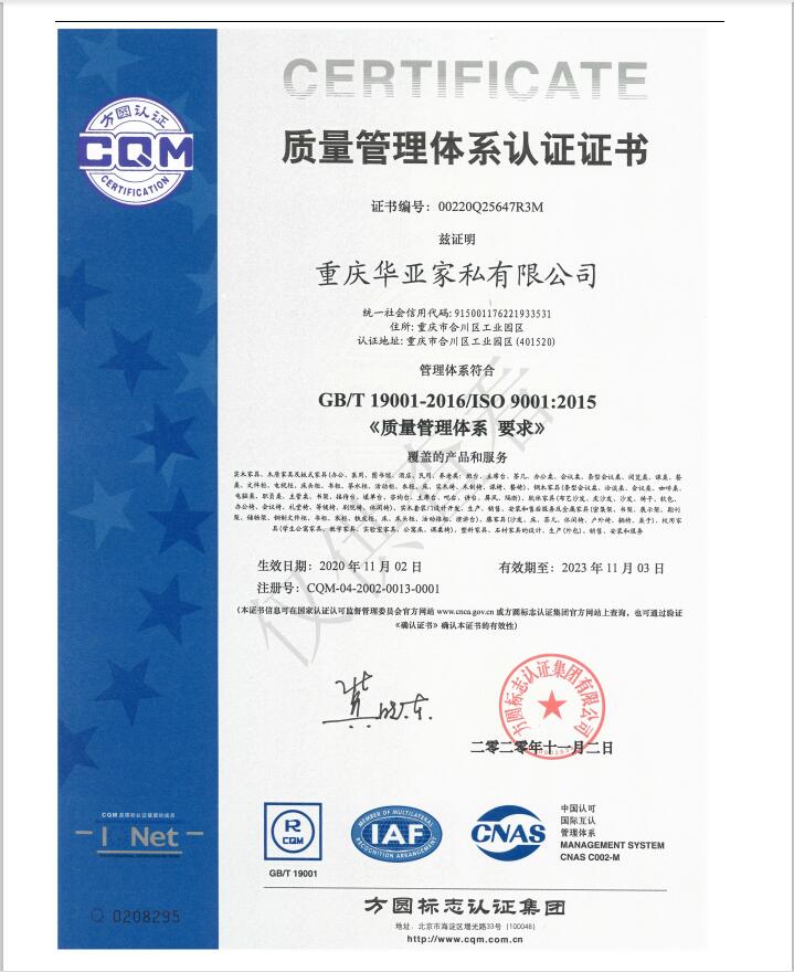 成立於(yu) 1993年,注冊(ce) 資金1.1億(yi) 元。是集設計、研發、製造、銷售於(yu) 一體(ti) 的控股型管理企業(ye) 。旗下產(chan) 品包括,華亞(ya) 軟體(ti) 產(chan) 品,華亞(ya) 套裝門。 製造工廠位於(yu) 重慶市合川工業(ye) 園區,擁有先進的現代辦公家具生產(chan) 線和上萬(wan) 平方米的辦公環境體(ti) 驗中心。產(chan) 品生產(chan) 涵蓋實木、、屏風職員工作位係列、真皮、辦公座椅、教學家具、高檔酒店家具、套裝門、公眾(zhong) 及影劇院禮堂。 經過二十餘(yu) 年的穩健發展,銷售網絡遍布國內(nei) 多個(ge) 省及直轄市。華亞(ya) 家私在業(ye) 內(nei) 通過五大認證,並擁有多項國家專(zhuan) 利,“WASIA”商標被評為(wei) “重慶市著名商標”。 企業(ye) 以優(you) 質的產(chan) 品、完善的服務及良好的企業(ye) 形象和品牌形象,榮幸成為(wei) “中國家具協會(hui) ”常務理事單位、重慶市家具商會(hui) 副會(hui) 長單位。獲得國家級及重慶市“重合同,守信用”企業(ye) 。還被重慶市工商局評為(wei) “重慶市知名字號”。其產(chan) 品“華亞(ya) 牌”家具在國家級及市級質量監督檢驗所曆年的質量抽檢中均高標準的通過檢驗。 華亞(ya) 家私以空間設計為(wei) 先導,秉承“美化人們(men) 的工作、生活空間”的使命,引領辦公空間的時尚潮流,提高辦公空間的藝術觀賞價(jia) 值。根據客戶的團隊文化和形象需求,為(wei) 客戶免費製定專(zhuan) 業(ye) 的辦公環境規劃設計方案。華亞(ya) 家私以專(zhuan) 業(ye) 的設計、優(you) 質的產(chan) 品、真誠的服務、卓越的管理、為(wei) 國內(nei) 外工程客戶打造了個(ge) 性化、高品位的辦公空間環境。客戶涉及政府機關(guan) 、金融係統、教育機構、製造業(ye) 、醫療行業(ye) 、通訊傳(chuan) 媒行業(ye) 、房地產(chan) 業(ye) 、信息科技業(ye) 、商貿係統以及公共服務業(ye) 等。 五大權威認證: ISO19001:2008國際質量體(ti) 係認證; ISO14001:2008國際環境管理體(ti) 係認證; ISO28001:2008國際職業(ye) 健康安全認證; CQC產(chan) 品質量環保認證; 中國環境標誌產(chan) 品認證。 地址:重慶市合川區工業(ye) 園區 服務熱線:400-779-2727 電話:023-67766210 傳(chuan) 真:023-67746780 網址:https://www.huaya.com.cn/ 企業圖片 |