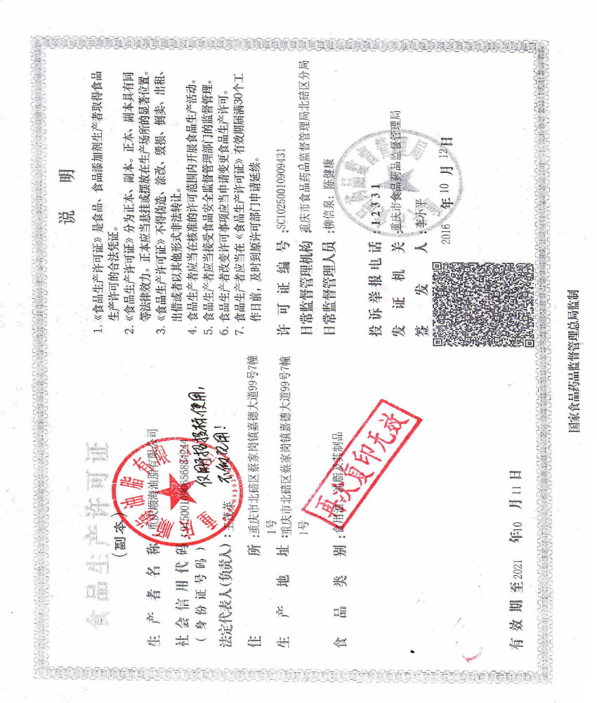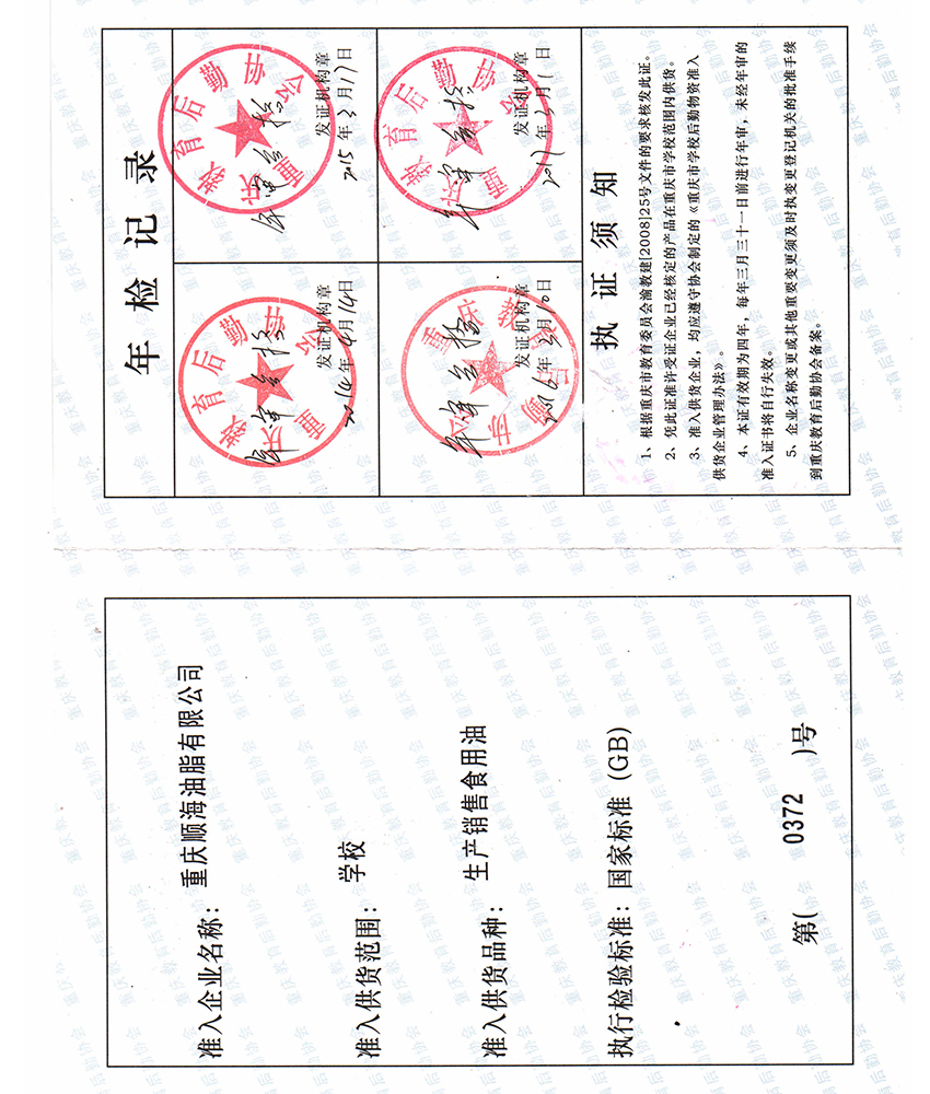 公司是重慶市糧油行業(ye) 協會(hui) 油脂分會(hui) 的會(hui) 員單位、重慶市火鍋協會(hui) 的理事單位、微商示範企業(ye) 等。