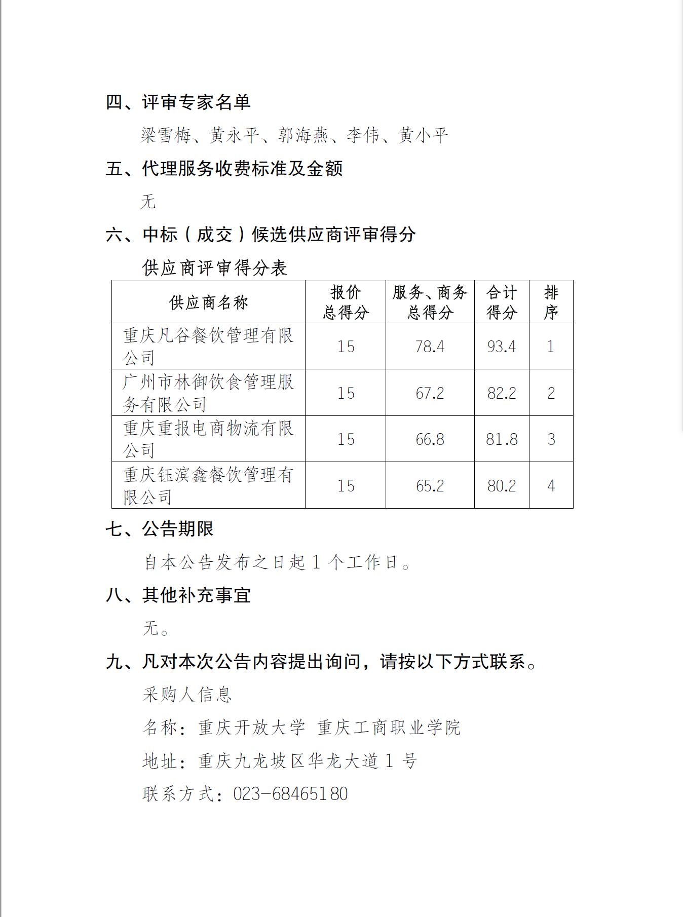 2024年國科大重慶學院食堂委托運營項目補遺更正通知